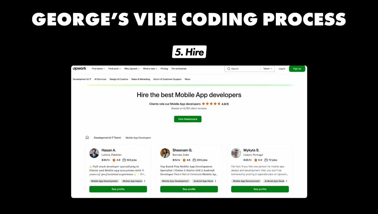 지금 제가 있는 단계인데요. 바이브코딩은 빠르게 출시하고 최소 기능 제품(MVP)으로 아이디어를 검증하기엔 정말 좋아요. 근데 월 5,000달러를 넘어서기 시작하면 제품 품질에 투자해야 해요. 저는 지금 전문 디자이너와 계약했고, 함께 일하는 직원들도 생겼어요.