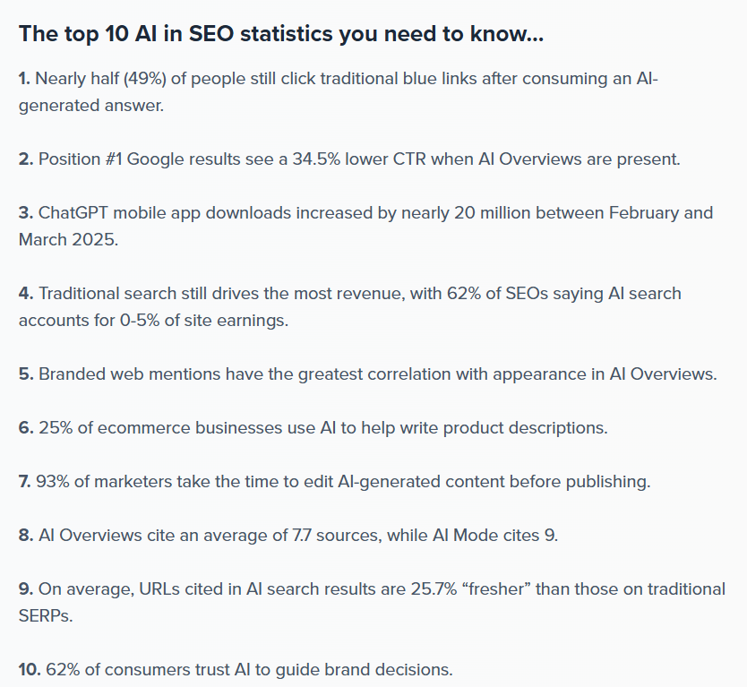 2025년 AI 검색 통계는 이 변화를 숫자로 명확하게 증명한다. (Link)