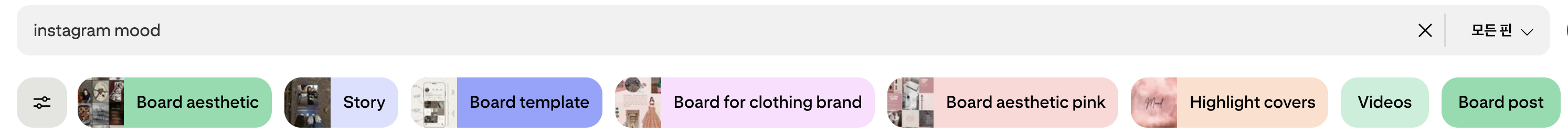 핀터레스트에 들어가서 아래 키워드로 검색할게요. 감정, 촬영 기법, 스타일에 따른 키워드인데요.