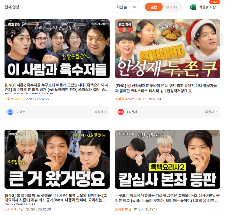 그래서 이번 아티클에서는 흑백요리사 시즌1·2 출연 셰프들 중 실제로 유튜브 성과가 ‘변화한 채널들’을 중심으로 흐름을 살펴봤습니다!
