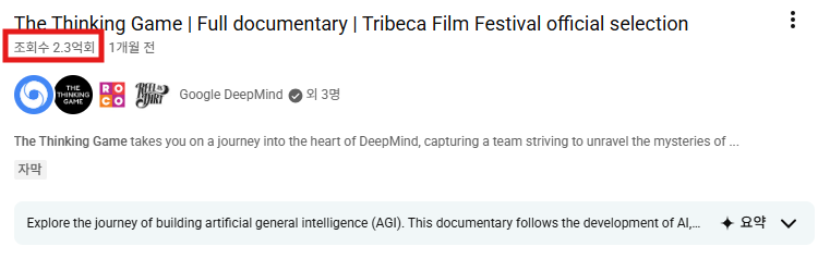 현재 2억뷰가 넘어간 AI 다큐가 있습니다.