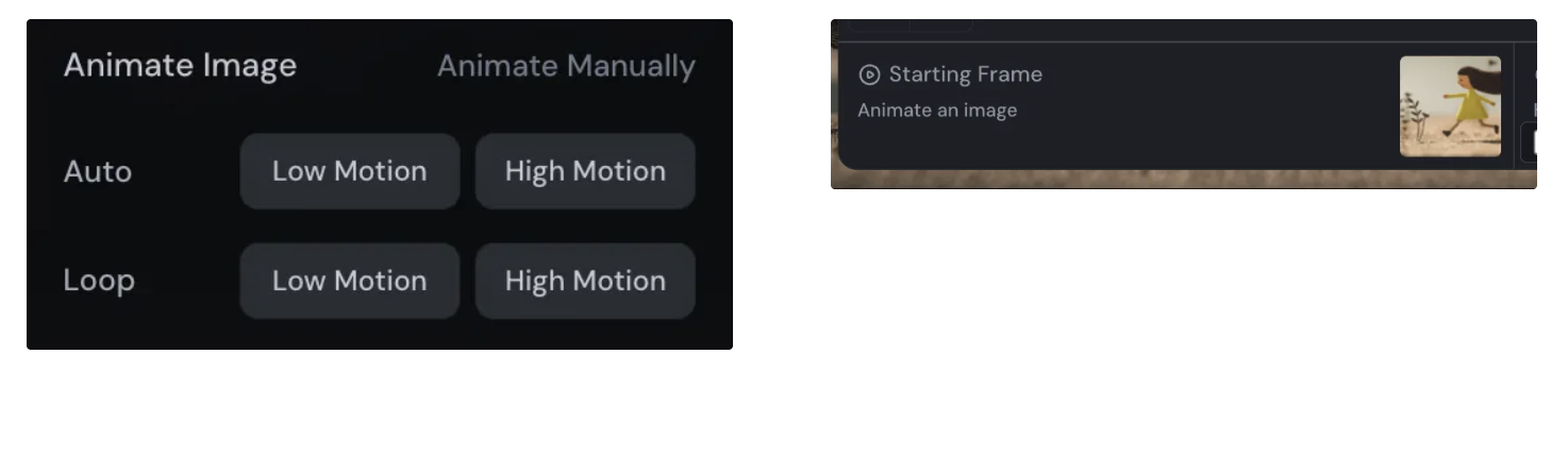 - 수정된 이미지: Starting Frame에 업로드 → Low Motion 선택