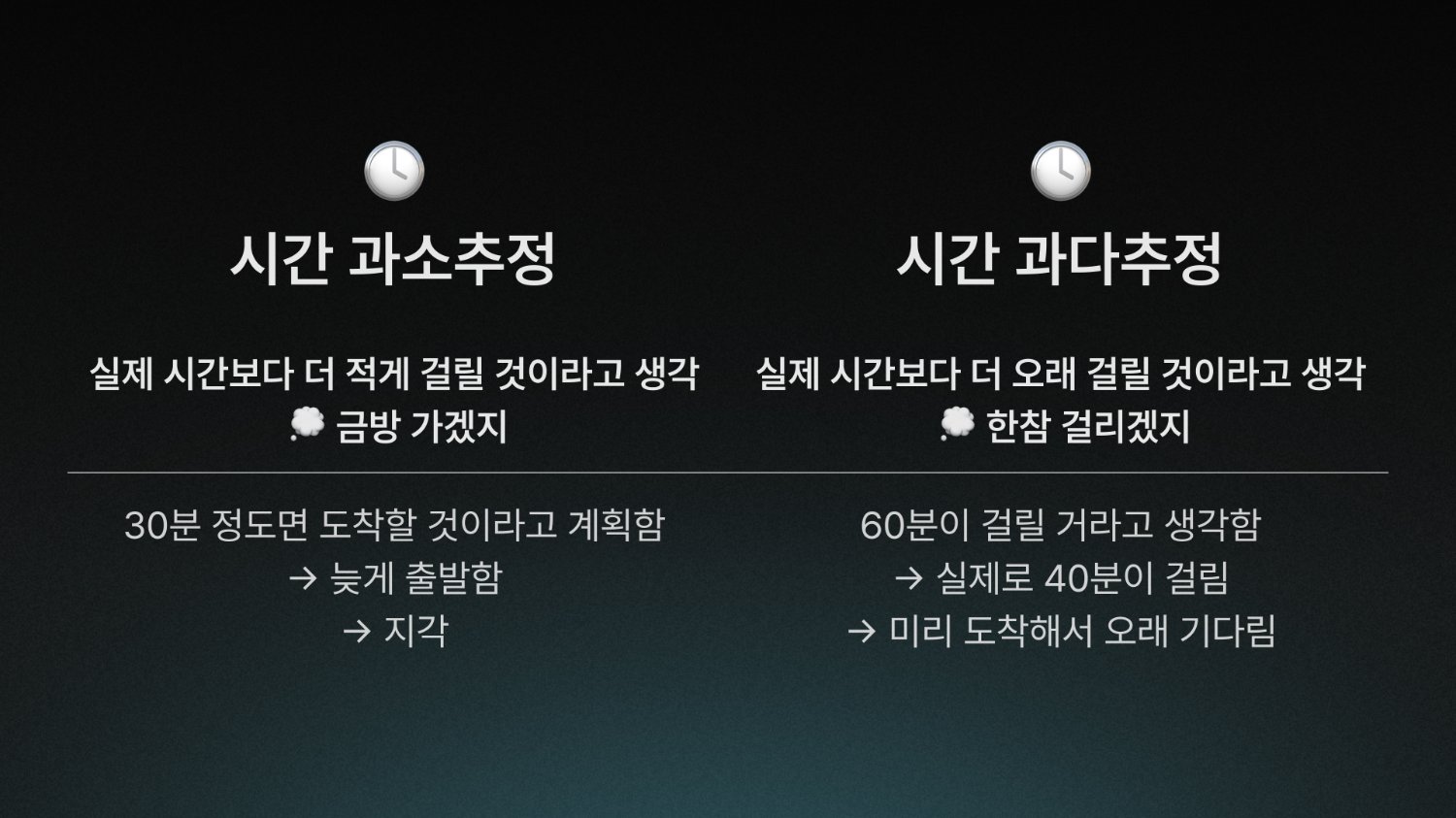 이런 시간 인식의 왜곡은 단순히 불편함을 넘어 삶 전체에 악순환을 만들어냅니다.
