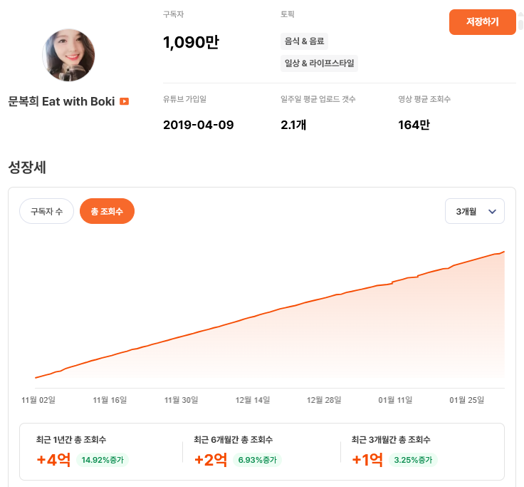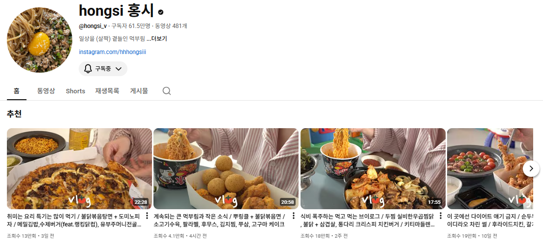 이게 바로 먹방이라는 장르가 처음 대중화될 수 있었던 이유이자 여전히 신규 시청자를 유입시키는 역할을 하는 기본형 콘텐츠죠! 특히 먹방 콘텐츠는 업로드 이후에도 조회수가 꾸준히 쌓이는 구조를 가지고 있어 단기 화제성보다 장기 트래픽에 강합니다. 그래서 조회수뿐 아니라 구독자도 동시에 꾸준히 올라가죠.