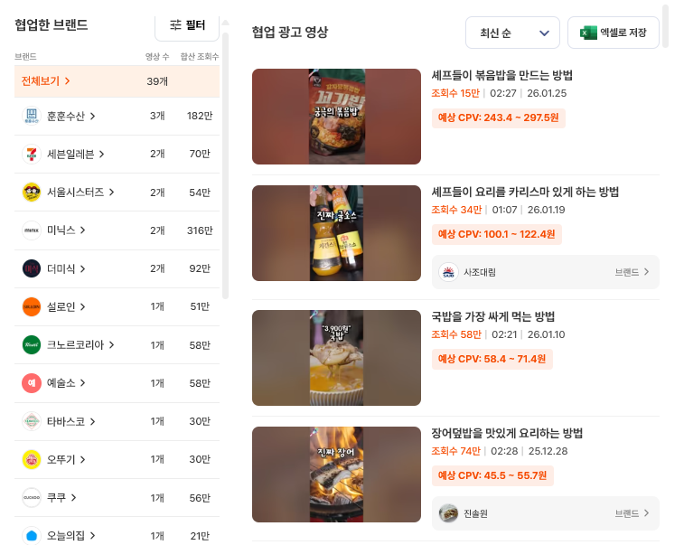 예능성이 강한 만큼 PPL의 범위도 넓고 음식 브랜드뿐 아니라 주류, 공간, 라이프스타일 브랜드까지 자연스럽게 연결될 수 있는 구조를 가지고 있습니다.