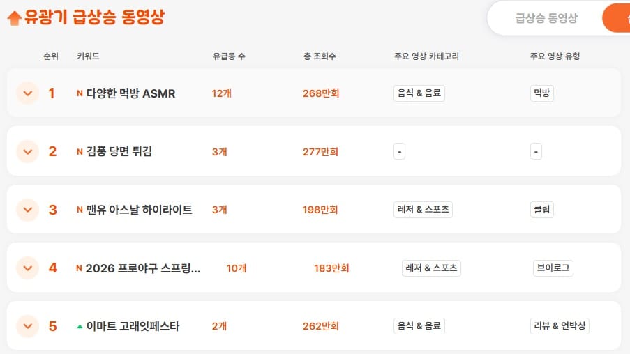유광기 급상승 트렌드를 보면 요즘 유튜브에서 다시 눈에 띄는 콘텐츠 흐름이 하나 있습니다. 바로 ‘음식’입니다.