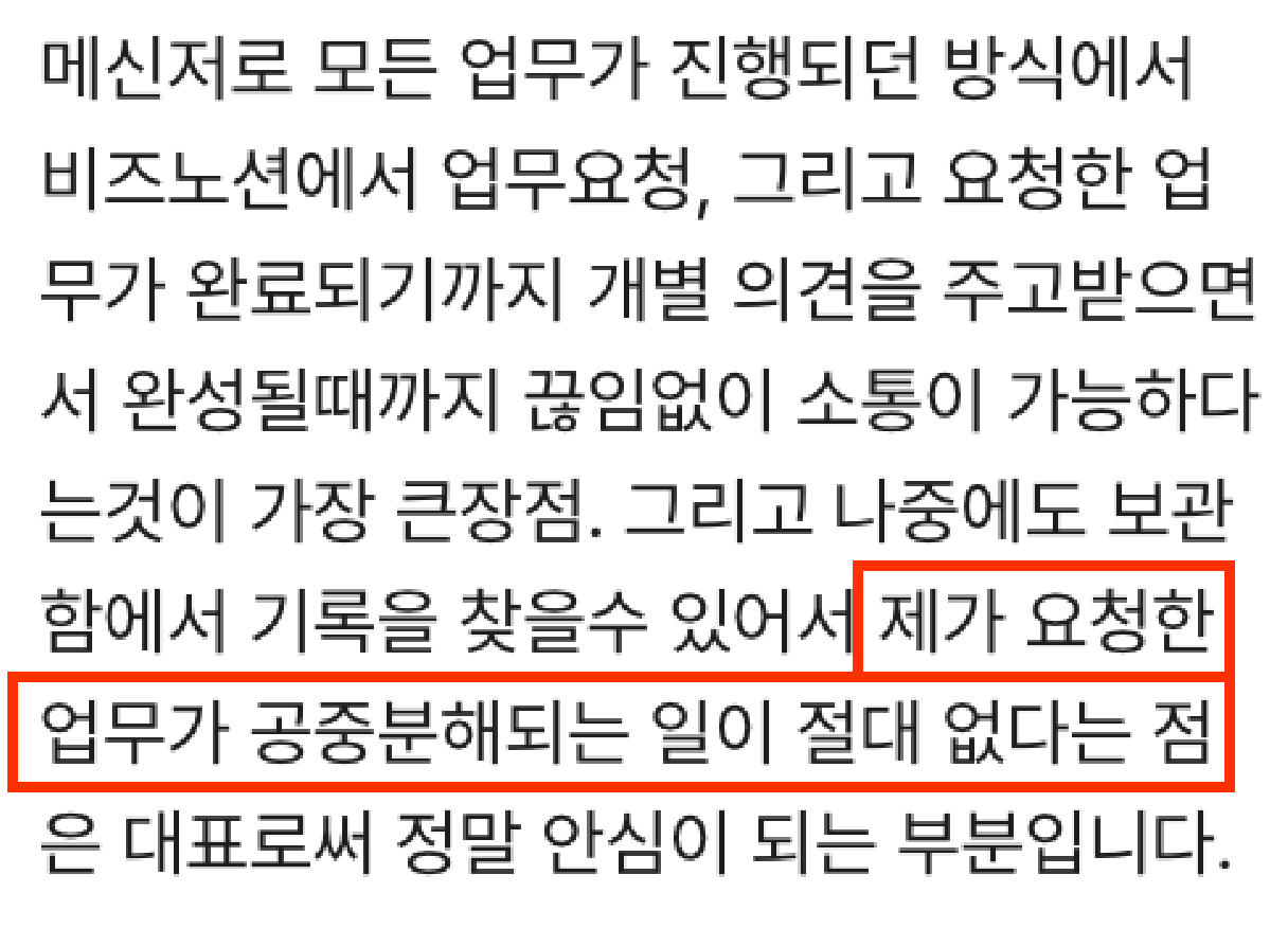 요즘 슬랙을 쓰는 회사가 많아졌죠. 슬랙은 메신저로는 괜찮지만, 정작 스타트업에 꼭 필요한 프로젝트 관리는 되지 않습니다. 누가 언제까지 무엇을 해야 하는지, 어느 단계까지 왔는지 파악하려면 대화 기록을 계속 뒤져야 합니다. 시간이 지나면 찾는 것조차 불가능해지죠. 슬랙은 메신저일 뿐, 프로젝트를 관리하는 도구가 아니기 때문입니다.