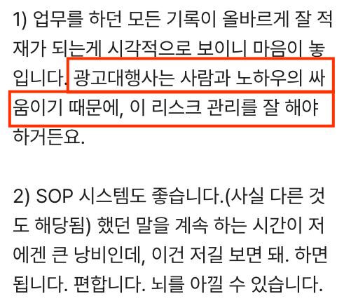 - 캠페인 단위로 움직이는 마케팅 조직 업무 기록을 체계적으로 쌓아두면 클라이언트가 많아도 리스크를 줄일 수 있습니다.