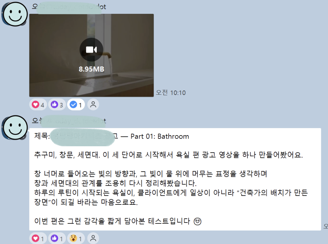 오**님께서는 건축가신데, 건축가의 시선을 광고 영상으로 풀어주셔서 흥미로웠어요.