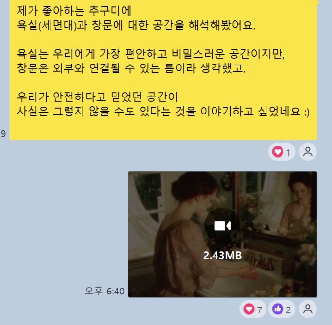 저번 미션 키워드는 < 추구미, 세면대, 창문 >이었어요.