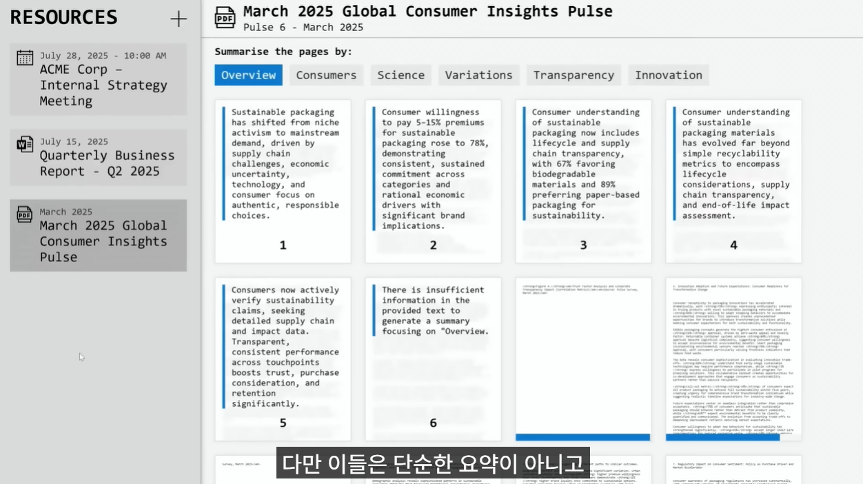 첫 번째 장치인 렌즈(Lenses)는 텍스트의 특정 측면을 강조하는 도구입니다. 예를 들어, 사용자가 보고서를 읽을 때 '소비자 관점' 렌즈를 선택하면, AI는 해당 맥락에서 중요한 데이터를 시각적으로 부각합니다. 이는 AI가 결론을 대신 내리는 것이 아니라, 사용자가 특정 프레임워크 안에서 정보를 비판적으로 재해석하도록 돕는 보조 역할을 수행합니다.