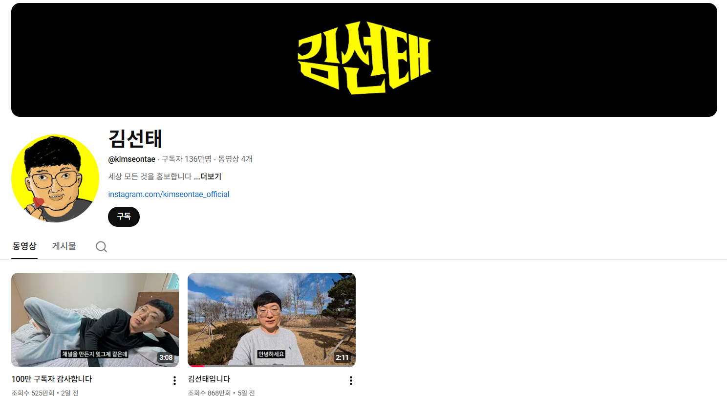 김선태 채널 영상이 업로드 3일 만에 구독자 100만 돌파했습니다. (3/8 기준 135만명)
