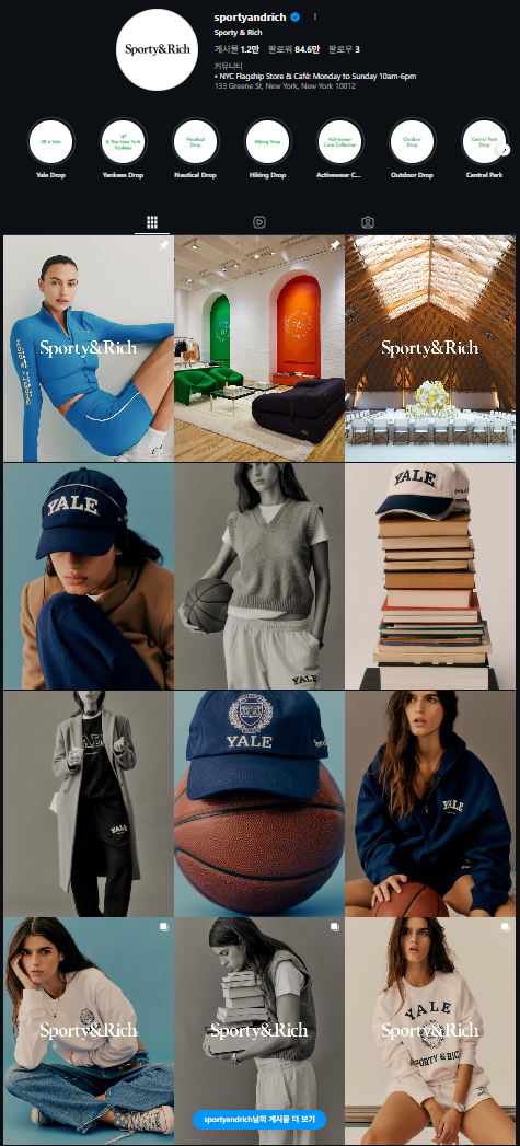 스포티 앤 리치 공식 인스타그램 (*출처- Sporty&Rich 인스타그램)