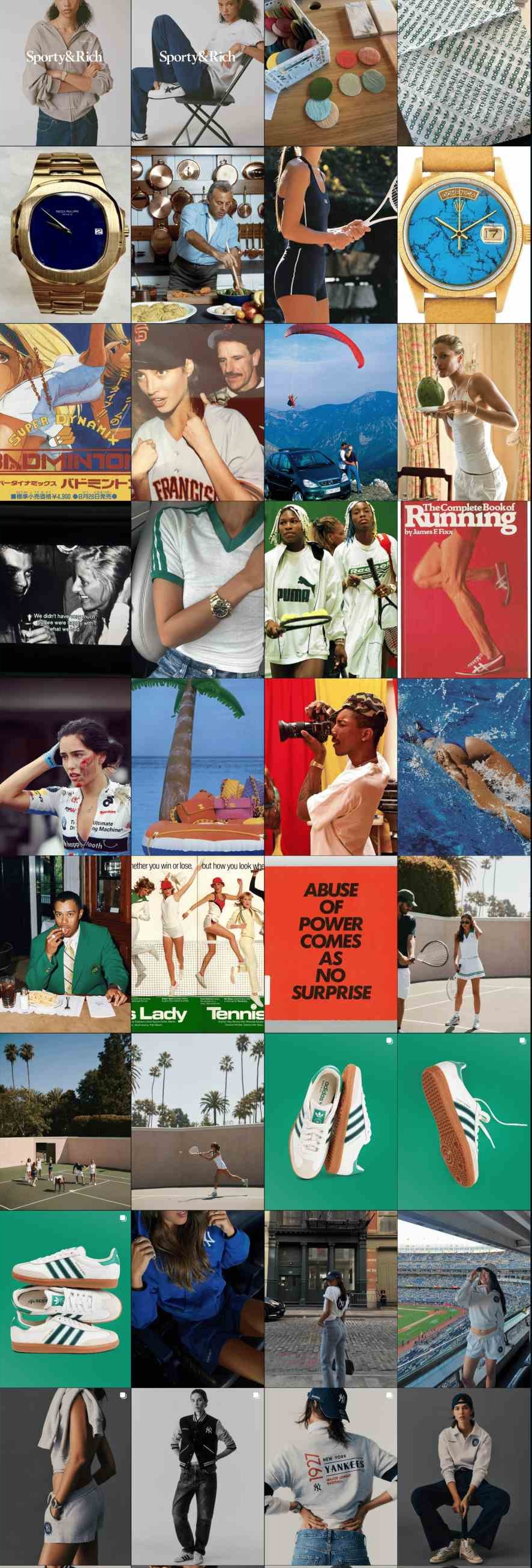 그리고 뉴욕으로 이사한 지 약 1년 후인 2015년경, 에밀리는 스포티 앤 리치(Sporty & Rich)라는 이름의 계정을 인스타그램에 만들었습니다. 처음에는 그냥 무드보드(mood board) 계정이었습니다. (*무드보드란 특정 분위기나 느낌을 전달하는 이미지들을 모아놓은 것입니다. 요즘 인스타그램에는 이런 계정이 수도 없이 많지만, 당시만 해도 이런 형태의 계정은 매우 드물었습니다.)