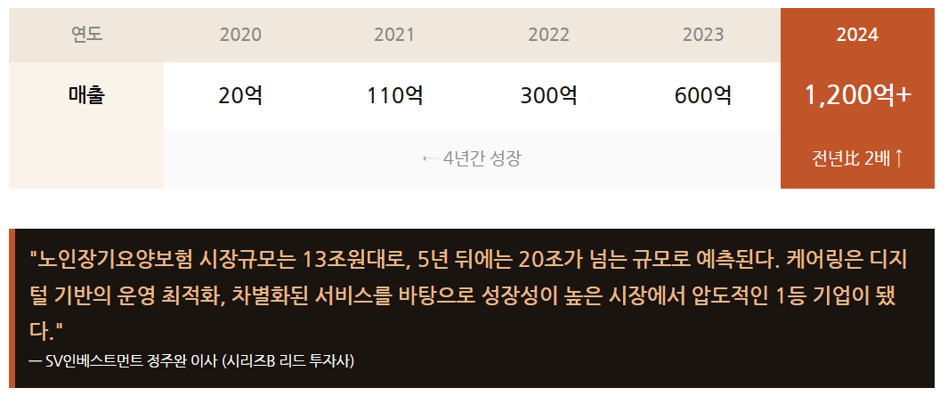 방문요양이라는 협소한 시장에서 출발해, 시니어의 삶 전체를 커버하는 플랫폼으로 영역을 넓혀가고 있습니다.