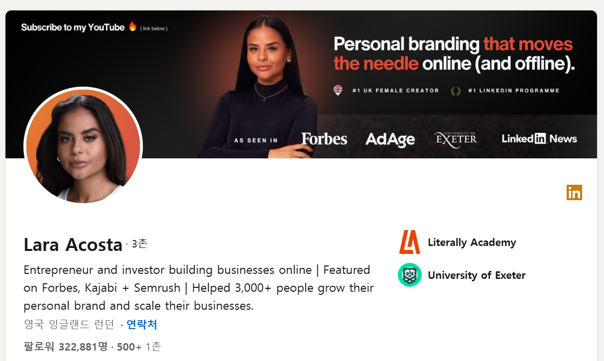 라라는 3년 전 링크드인에 첫 포스팅을 했고, 지금은 30만 명의 팔로워를 보유하고 있습니다.