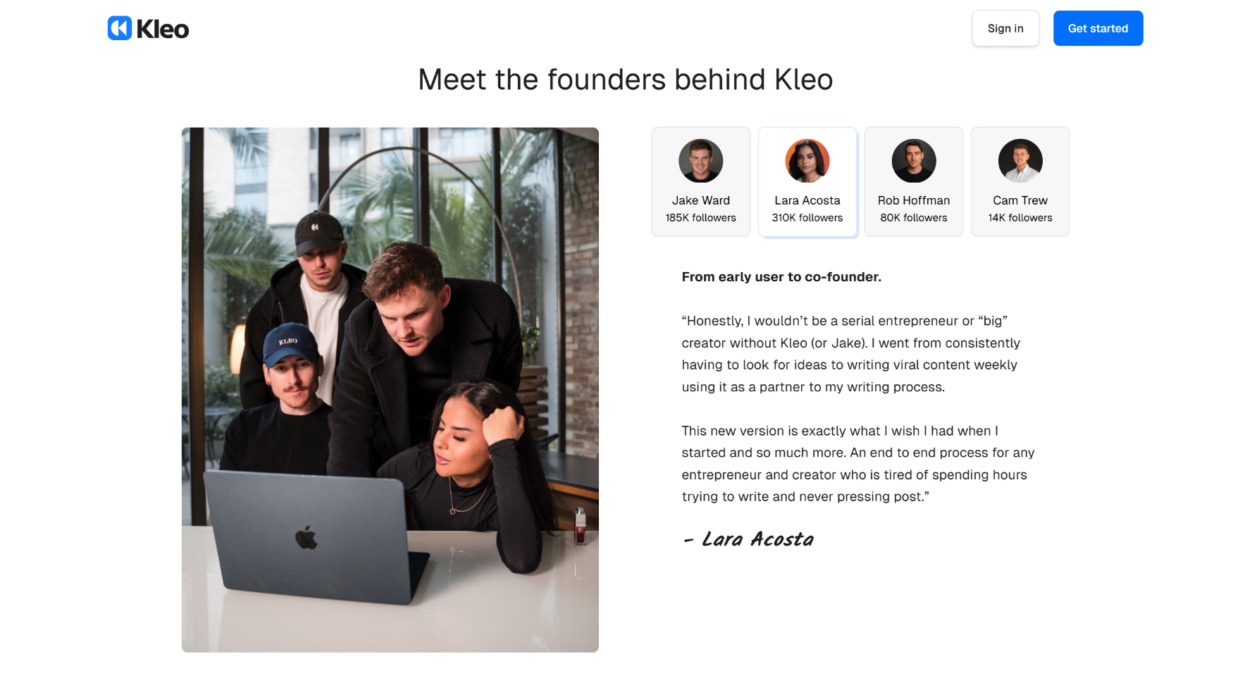 Kleo의 창업자 소개를 보면, 모두 링크드인 인플루언서다.