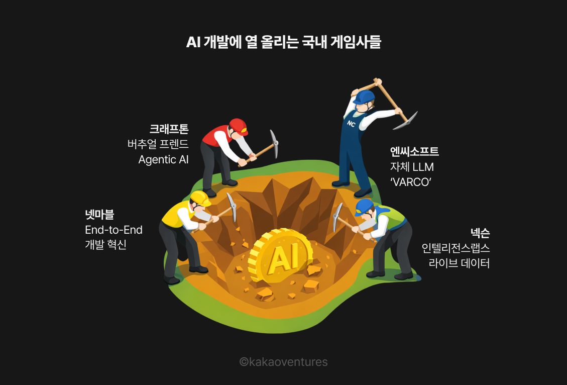 국내 주요 게임사들은 잇따라 ‘AI-First’를 선언하고 대규모의 AI 인프로 투자를 공표한 바 있습니다. 의사결정 전 과정에 AI를 적용해 생산성을 높이겠다는 말도 나옵니다. 상장사 입장에서 이러한 선언은 주주와 시장을 향한 메시지이기도 합니다. 이제는 IR에서 AI를 빼놓으면 구구절절한 설명이 필요한 시대가 되었기 때문이죠.