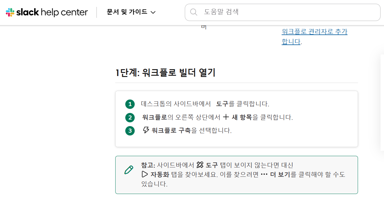 처음에는 Slack 안에서 자동화 워크플로우를 짜서 해결하려고 했었거든요. 새로운 기술을 도입하기 보다 기존에 익숙한 툴 안에서 해결방법을 먼저 탐색했었습니다.
