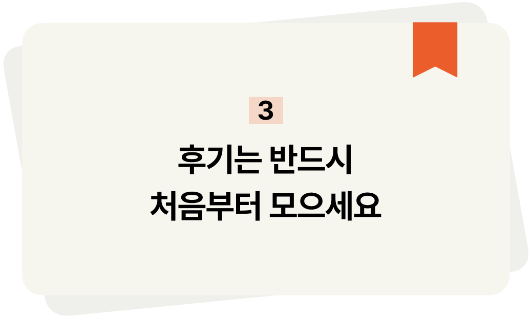 특히 아직 아무것도 없는 초반일수록, 작은 후기 하나가 더 강력하게 작용하기 때문에 꼭 의식적으로 받으라고 말해요. 나 대신 상품을 설명해주는 가장 믿을 만한 세일즈맨이 되어준다고요.