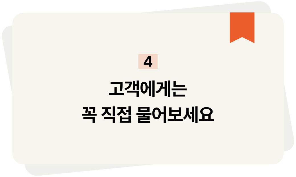 왜 샀는지, 실제로 도움이 됐는지, 다음엔 뭘 원하는지 끊임없이 고객에게 직접 물어보세요.