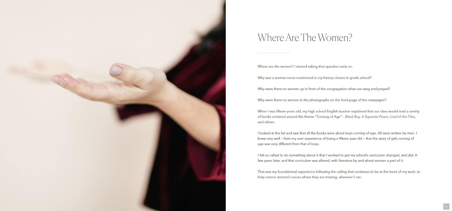 '어릴 적 교육에서도 우리는 여성의 이야기를 거의 접하지 못했다'고 말하는 티라 (출처- taramohr.com)