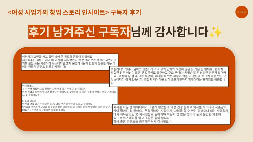 구독자님들께서 남겨주신 후기와 피드백 보면서 큰 힘을 얻고 있습니다:) 글도 좋게 봐주시고, 귀중한 시간 내어 후기도 작성해주셔서 감사합니다! 남겨주시는 후기와 피드백, 의견 빠짐없이 잘 보고 있습니다. 여러분이 남겨주시는 후기와 응원, 피드백과 의견이 저에게 큰 도움이 됩니다💗