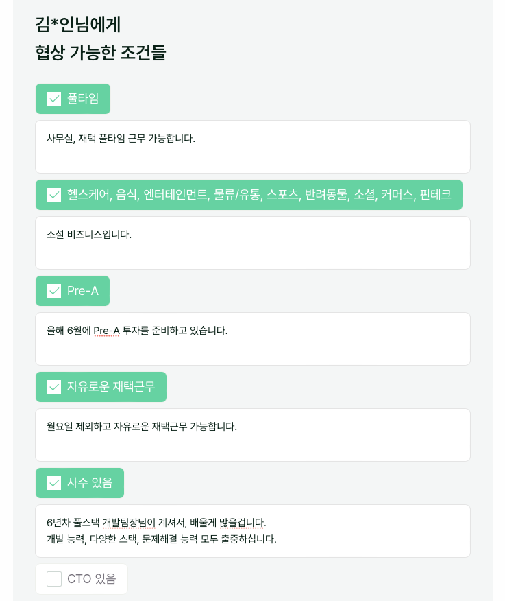 개발자가 작성하신 “스타트업에 기대하는 점”을 확인하고 우리 회사가 개발자님이 찾고 있는 스타트업임을 어필해주세요.