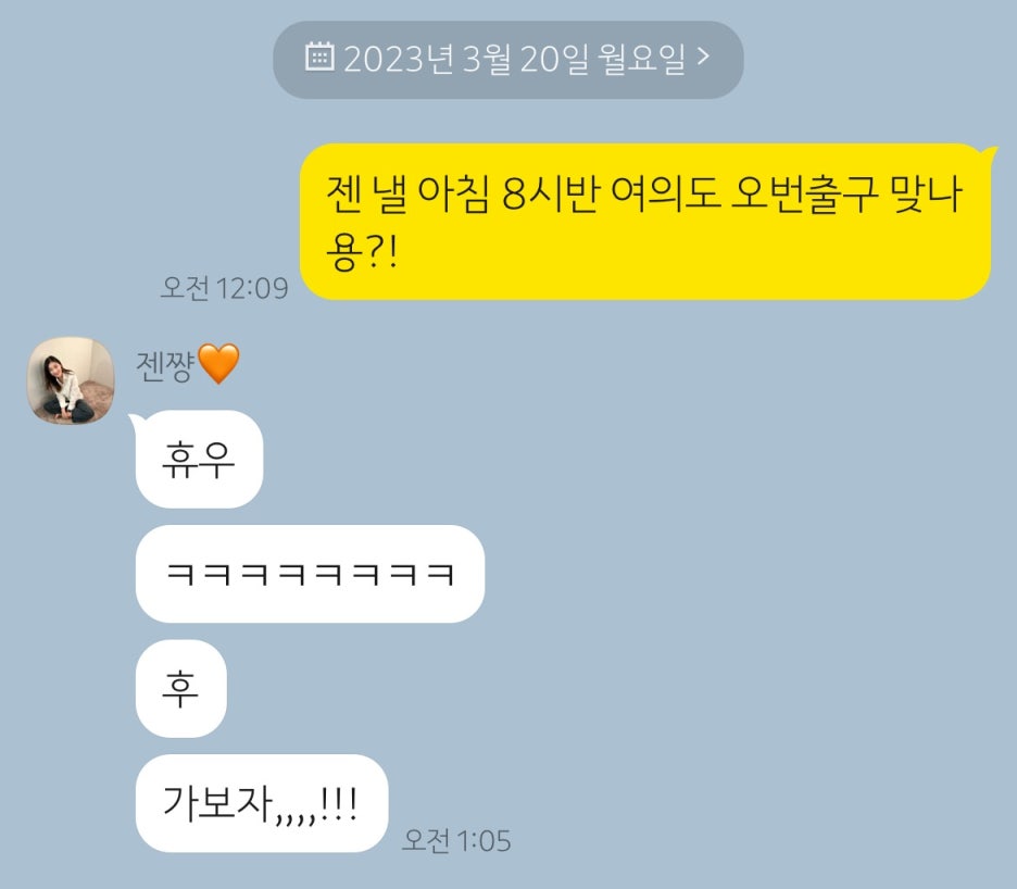 아침에 도착한 여의도역 5번 출구에는 직장인도 많았지만