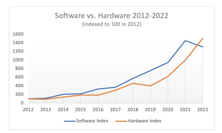 Snowcloud Capital <2012~2022 미국 소프트웨어, 하드웨어 기업 주가지수 비교>