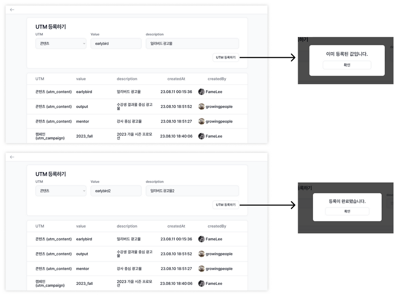 호출 로직을 처리한 후, 데이터의 생성(Create), 수정(Update)과 삭제(Delete) 로직을 구현했으며, 이때 케이스 별 로직 처리를 고려해야 합니다. 예를 들어, URL 데이터를 생성할 때, 무작정 입력한 모든 값을 URL로 등록하면 안 됩니다. 현재 워크스페이스에 이미 등록된 URL이라면, 이를 등록하지 못하게 막아둬야 합니다.