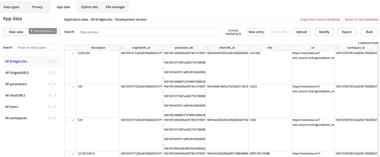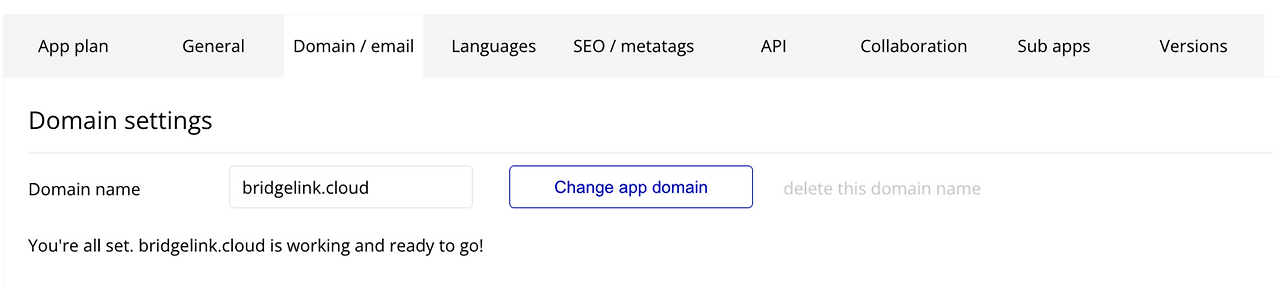 버블은 작업한 서비스에 bubbleapps.io라는 도메인을 기본 제공합니다. 예를 들어, 서비스 이름이 bridgelink라면, 서비스 URL은 bridgelink.bubbleapps.io이 됩니다. 기본 도메인이 마음에 들지 않는다면, 직접 구매한 도메인을 연결할 수도 있습니다. ShortURL 기능에서 bubbleapps.io 도메인은 길이가 길다고 판단해, 별도로 도메인을 구매해 사용하기로 했습니다. 어떤 도메인을 사용할까 고민하다, “Cloud”라는 도메인이 “링크를 공유한다”는 컨셉에 부합해 이를 구매해서 연결했습니다.