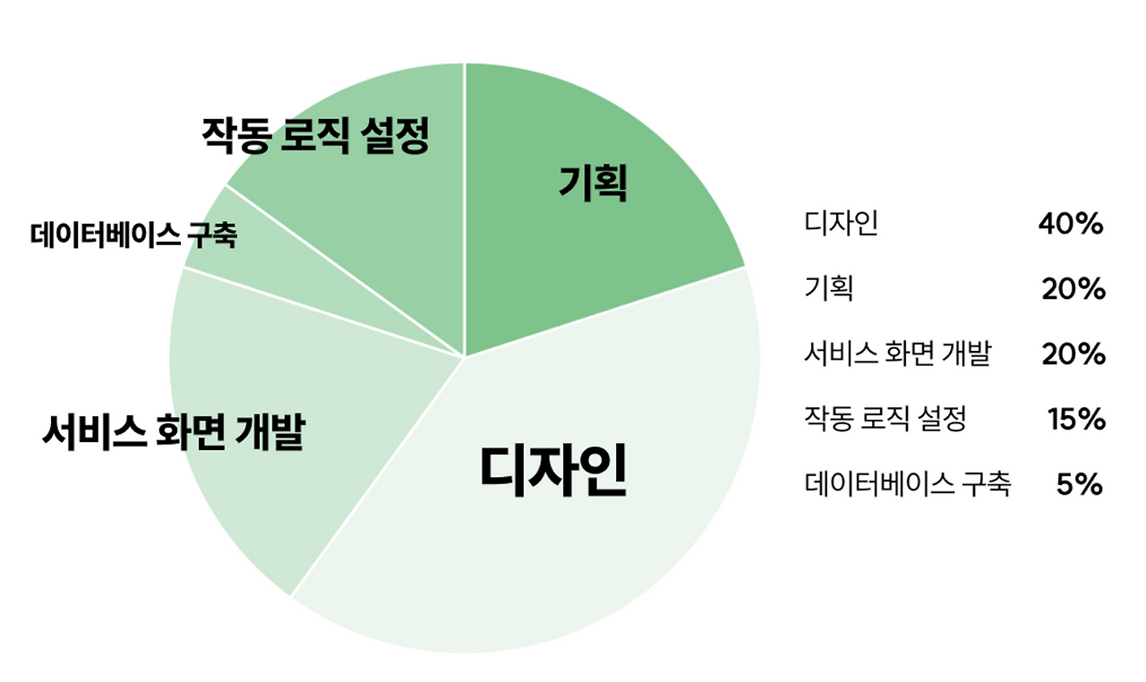 약 24시간 만에 브릿지링크 서비스를 만들면서, 어떤 업무에서 시간이 많이 소요됐는지를 체크해 봤습니다. UI 디자인에서 가장 오랜 시간이 걸렸고, 그다음으로 프론트엔드 작업과 로직 설정에서 걸렸습니다. 로직 설정에서 시간이 걸린 이유는 케이스에 따른 로직을 고려해야 했기 때문입니다.