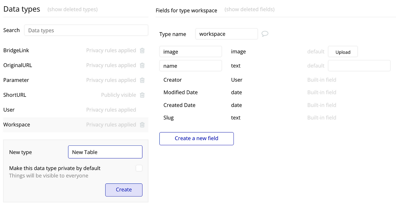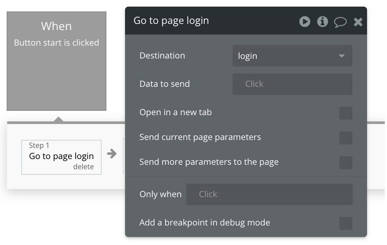 데이터베이스를 구현했으니, 이제 서비스 작동 로직을 처리할 차례입니다. 버블의 로직은 워크플로우 형태로 존재합니다. 워크플로우는 (1) 트리거 이벤트와 (2) 액션 이벤트로 구성되며, 트리거 이벤트가 작동되면, 연결된 일련의 액션 이벤트가 작동됩니다. 예를 들어 서비스에서 특정 이미지나 버튼을 클릭하면, 다른 페이지로 이동됩니다. 여기서 트리거 이벤트는 “특정 이미지나 버튼의 클릭”이고, 액션 이벤트는 “지정한 페이지로 이동”이 됩니다.