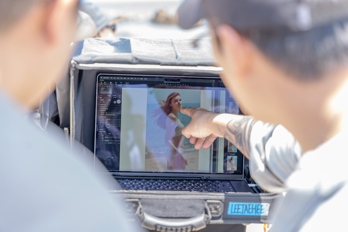 SS화보 촬영 현장, 화보 모니터링 하는 호경 님