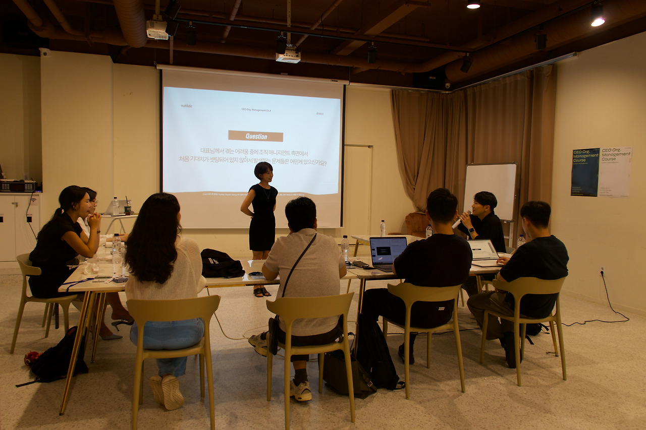 형식상 다 같이 듣는 강의와 함께 개인의 고민에 집중할 수 있는 과제 방식, 그리고 다른 CEO와 함께 논의해 보며 기준을 잡아갈 수 있는 그룹코칭의 결합이 큰 강점입니다.