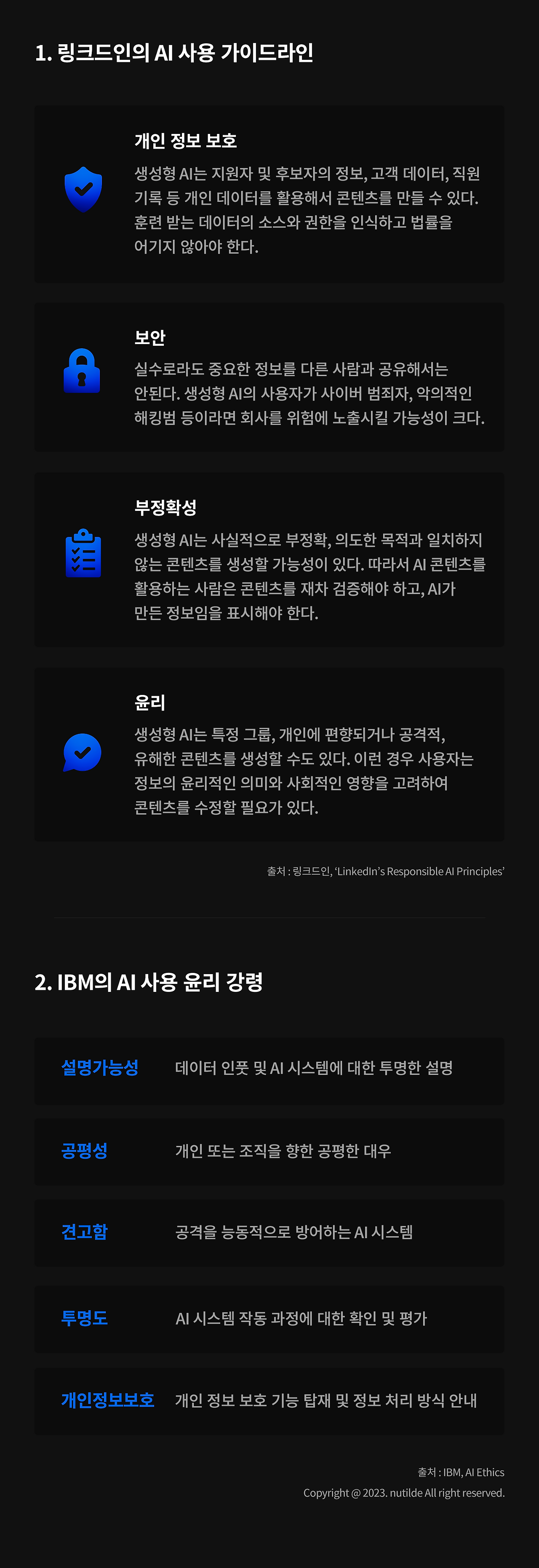 링크드인과 IBM의 AI 사용 가이드라인을 대표적인 예시로 살펴볼 수 있습니다.