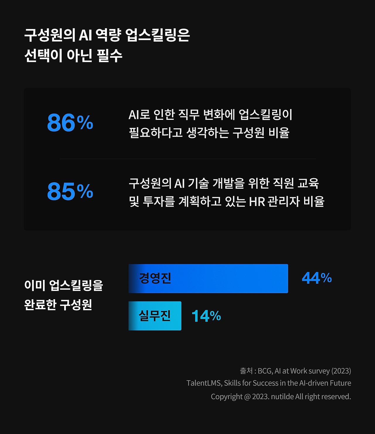 AI 도입이 채용, 조직 구조, 시스템까지 연쇄적으로 영향을 미치는 모습인데요. 전문가, 미디어들은 입을 모아 해결책은 결국 직원 교육에 있다고 말합니다. 디지털 업무 전문가이자 저자로 활동 중인 알렉산드라 사무엘(Alexandra Samuel)은 심지어 신입사원이 입사 후 1~2년 내 중간 직급이 될 수 있도록 사내 인재 양성에 투자가 가속화될 것이라고 내다보기도 했습니다. 중간 직급을 채용하는 데 AI가 미치는 영향인데, 조직 구조 이슈로도 이어지는 내용이네요.