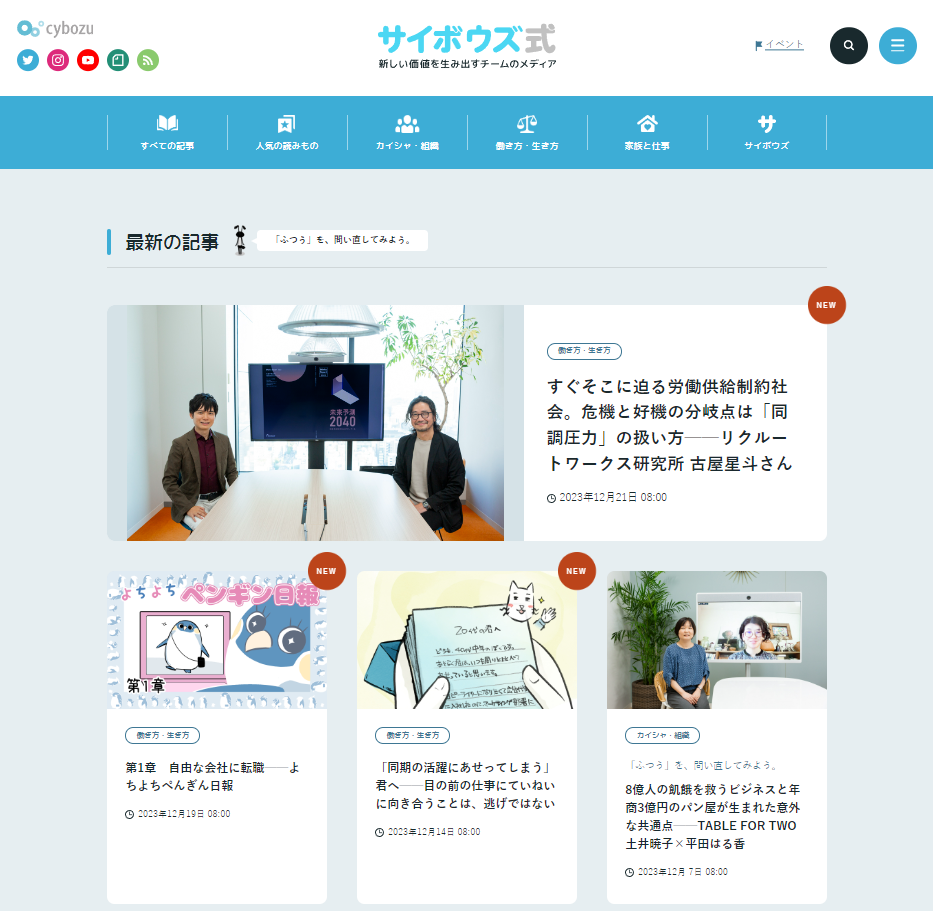 사이보즈의 브랜드 이미지에 공헌하고 있는 것은, 바로 2012년 5월에 시작한 온드미디어 '사이보즈식(式)' 입니다. 사이보즈로 이직한 사람들은 "입사를 결정한 계기가 '사이보즈식'이었다"고 대답하는 케이스가 많을 정도로 채용 온드미디어의 성공사례 중 하나라 볼 수 있겠습니다.