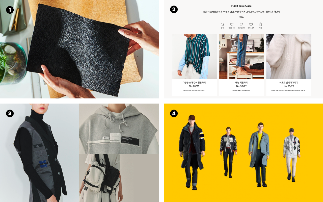 H&M에서는 홈페이지에는 지속가능성이라는 섹션을 별도로 카테고리화하고, 원단의 출처나 재활용이 가능한 제품 정보, 옷을 더 오래 입을 수 있는 방법, 수선 리폼 업그레이드 등을 게시해 지속가능성에 대한 소비자의 의식을 제고하고 있습니다.