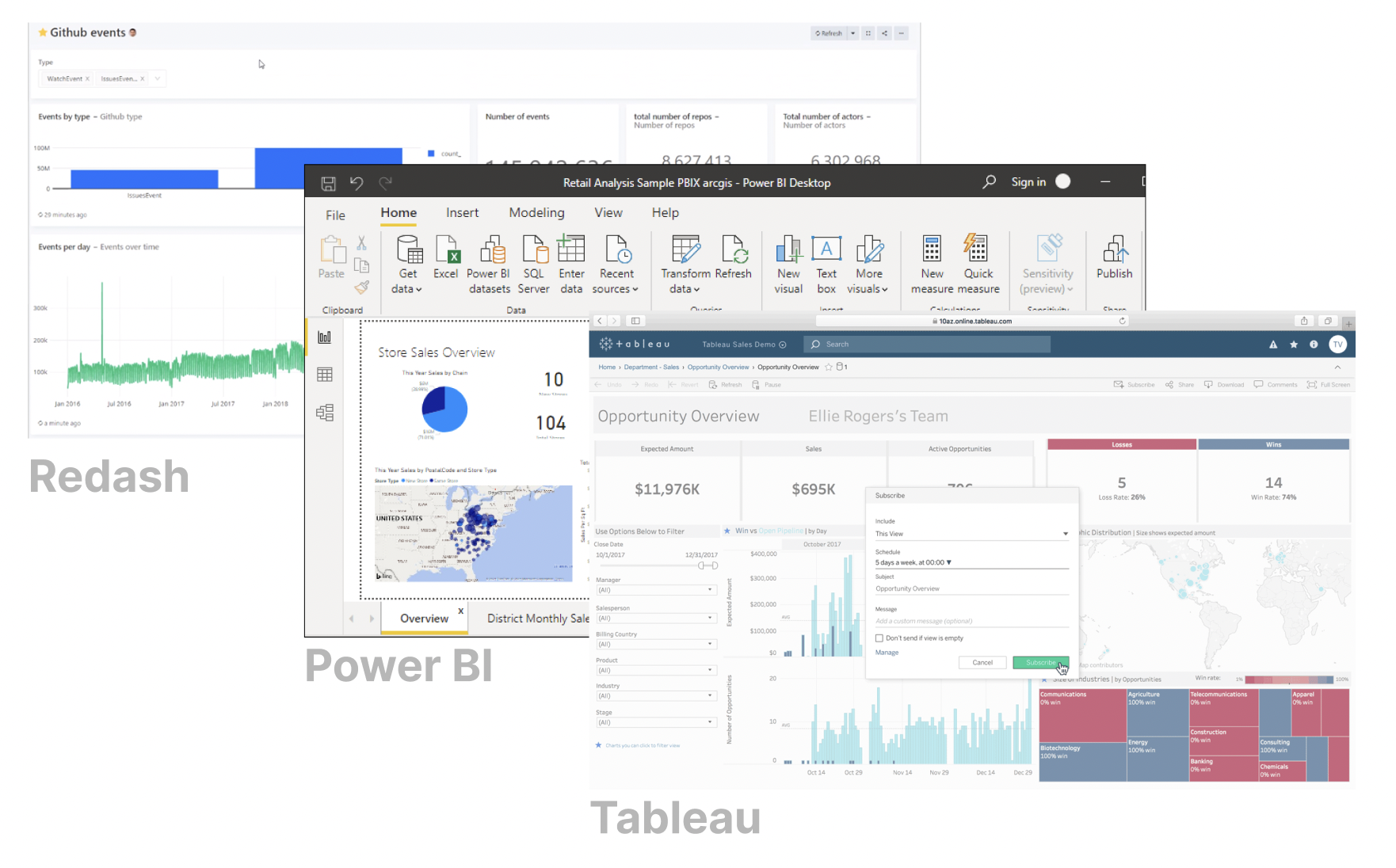 믹스패널을 도입하시는 고객사들과 온보딩을 진행할 때 믹스패널을 통해 이러이러한 지표들을 트래킹하고 싶다는 말씀을 듣게 되는데(저희가 필수적으로 묻기도 합니다), 그것들이 이런 BI 개념에 가까운 후행지표일 때가 많습니다. 그러다 보니 높은 정합성을 기대하시게 되고요. 정합성은 물론 중요하나, 기업의 실적과 직접 연관된 BI 지표들은 몹시 높은 정합성이 필요하고, 그러한 데이터는 서버에 직접 저장되는 데이터로 확인하는 것이 바람직합니다. 그리고 이러한 서버 데이터를 추출하고 시각화하기 위해 Tableau, Power BI나 무료 툴인 Redash 등 여러 BI툴 도입을 고민하게 됩니다.
