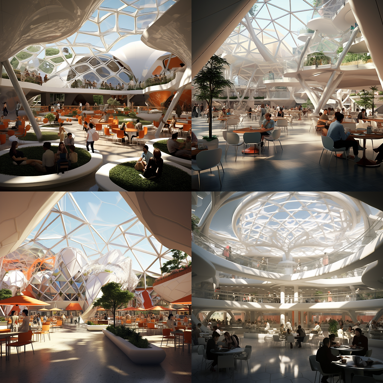A Food court of a Architectural View in a Modern style, with Community spaces. Rendered in Artlantis by Buckminster Fuller