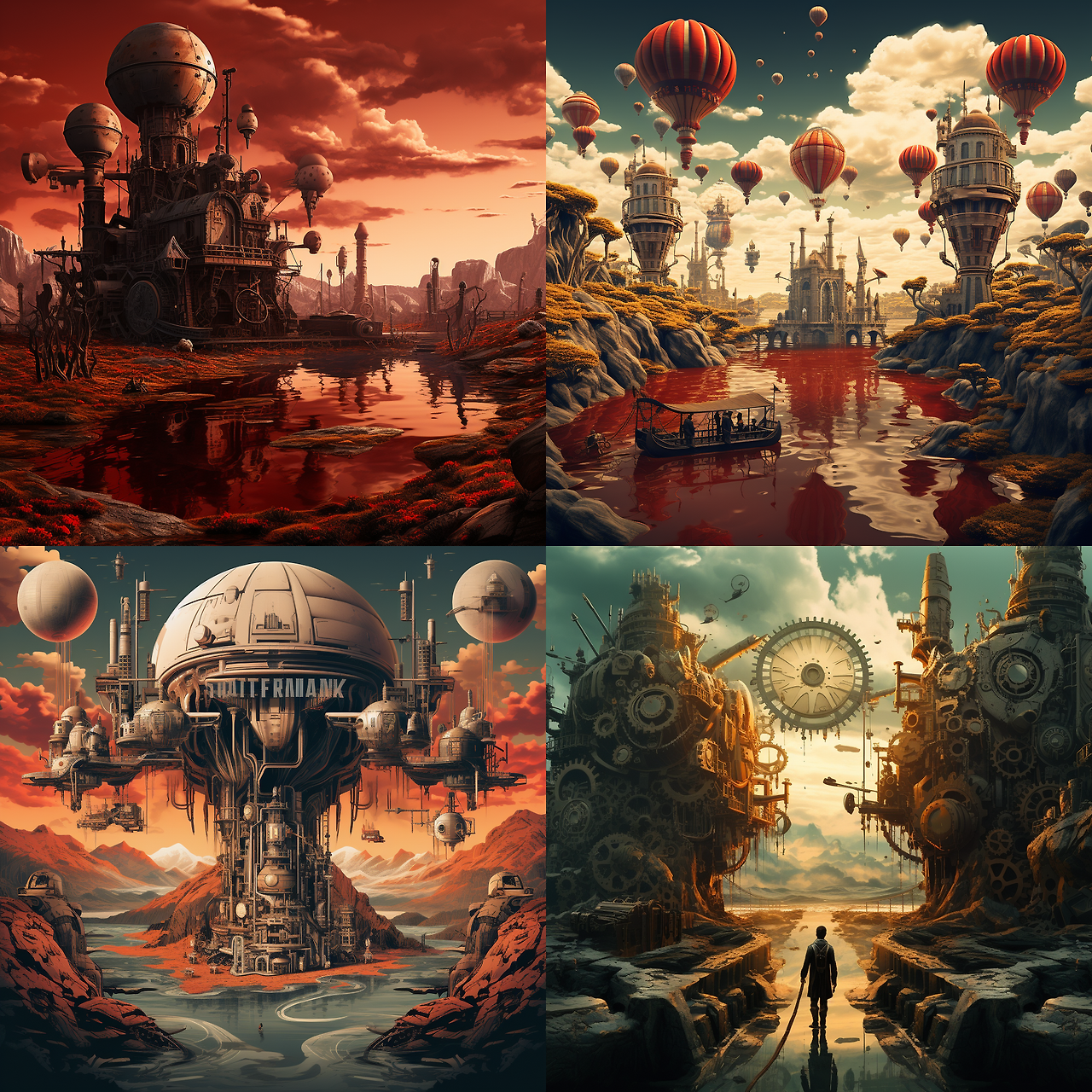 Create an NFT art with a Surrealism theme, showcasing a Dystopian Landscape, in the style of Steampunk